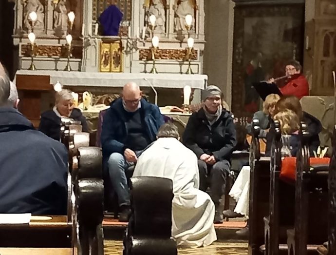 Erstmalig hat Pastor van Doornick den Ritus der Fußwaschung am Gründonnerstag praktiziert und damit an die Fußwaschung Jesu bei seinen Jüngern erinnert. Viele nahmen an dem Familiengottesdienst teil, bei dem Kommunionkinder und Erwachsene aktiv einbezogen wurden und Fußspuren ablegen konnten. Musikalisch hat die Gruppe Saitenwind den Gesang mit modernen LiedernContinue Reading