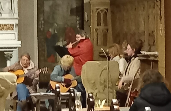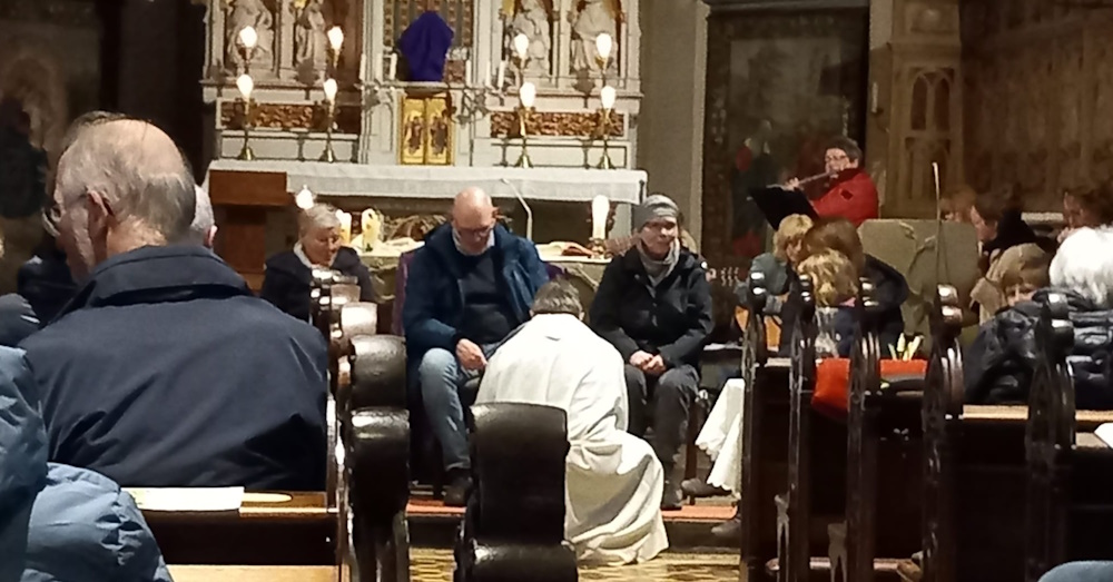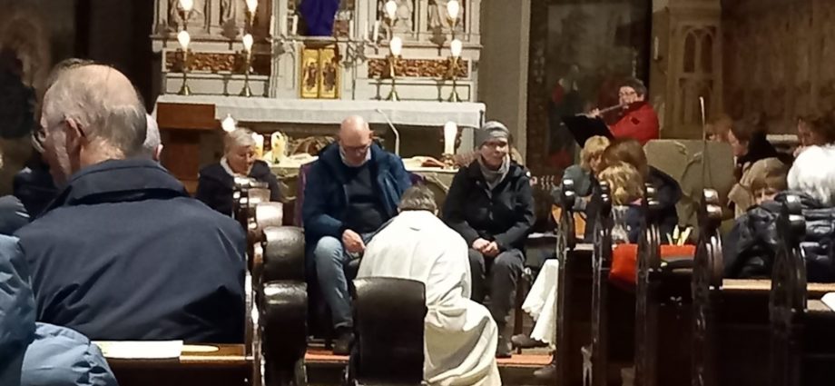 Erstmalig hat Pastor van Doornick den Ritus der Fußwaschung am Gründonnerstag praktiziert und damit an die Fußwaschung Jesu bei seinen Jüngern erinnert. Viele nahmen an dem Familiengottesdienst teil, bei dem Kommunionkinder und Erwachsene aktiv einbezogen wurden und Fußspuren ablegem konnten. Musikalisch hat die Gruppe Saitenwind den Gesang mit modernen Liedern unterstützt, so dass der gutvorbereitete Gottesdienst ein guter Auftakt für die Kartage war.