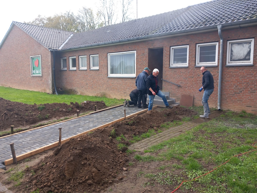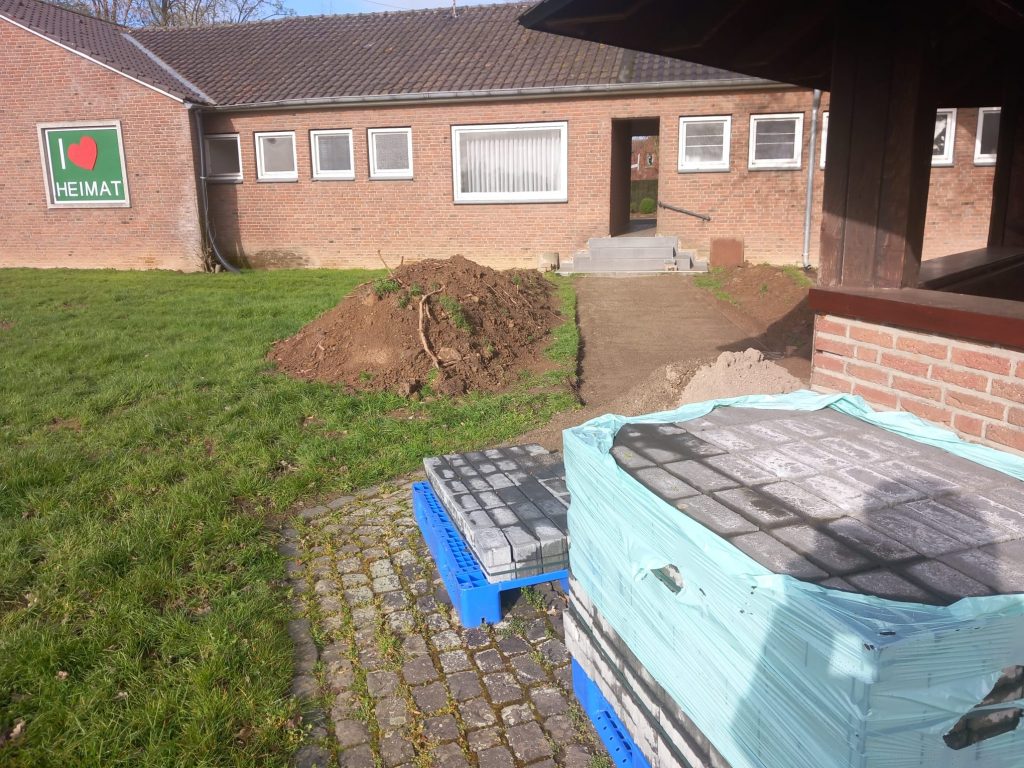 Vom Durchlass bis zum Pavillion am REZ wurde jetzt der Zuweg in Eigenleistung gepflastert, so dass Bequemlichkeit und Optik auf der Festwiese noch weiter verbessert wurden.