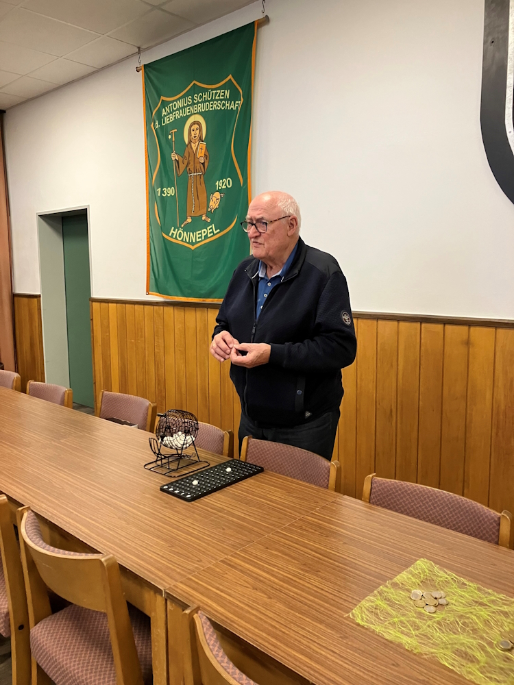 So zum Beispiel Bingospiel von Peter Janßen organisiert, wo alle sehr konzentriert die Zahlenreihen verfolgen.