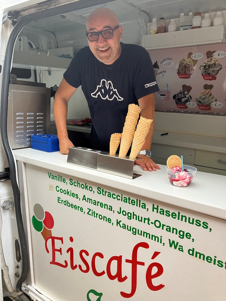 Im Juli hatten wir bei herrlichem Sommerwetter einen Eiswagen kommen lassen, worüber sich die Senioren sehr freuten.