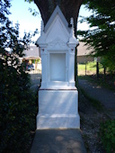 holzgeschnitzte Figur (Natur) in das Heiligenhäuschen gestellt. Vor 8 Jahren: