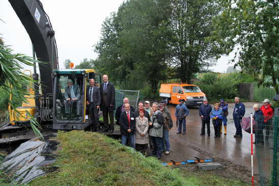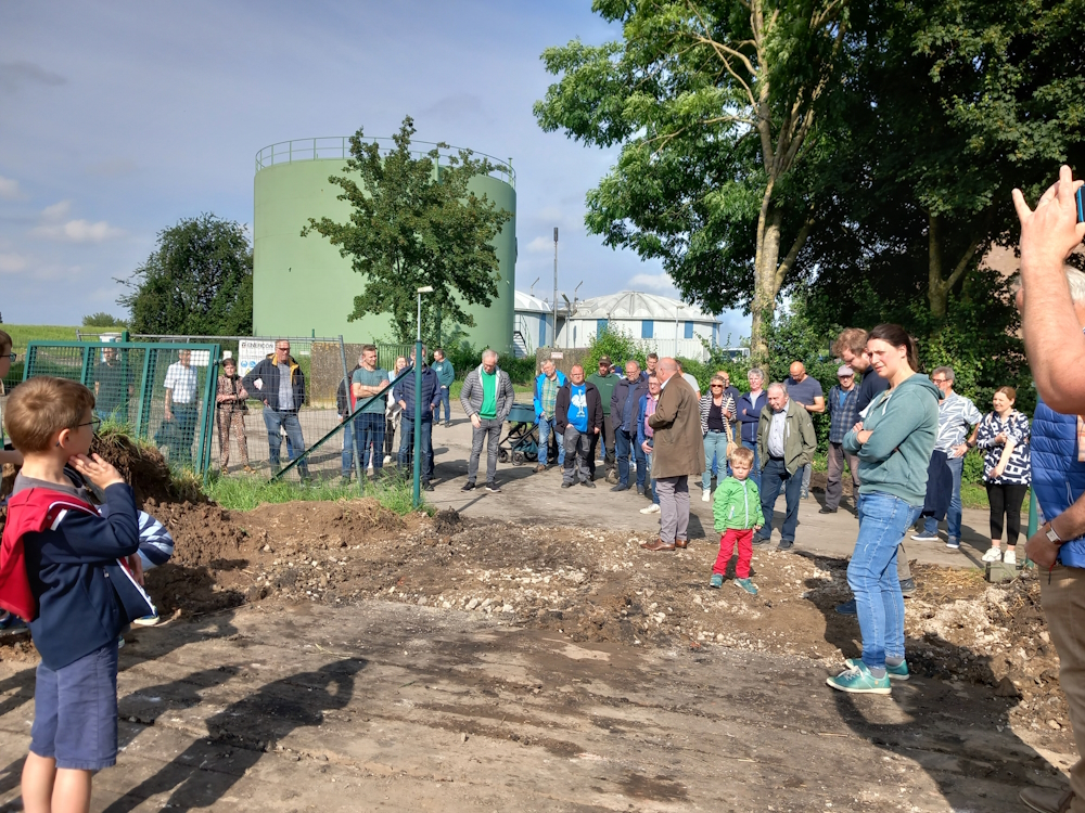 Spatenstich zur Erweiterung der Klärschlammvererdungsanlage am 22. Juni 2005 unter Beteiligung von Hönnepels Bürgern: