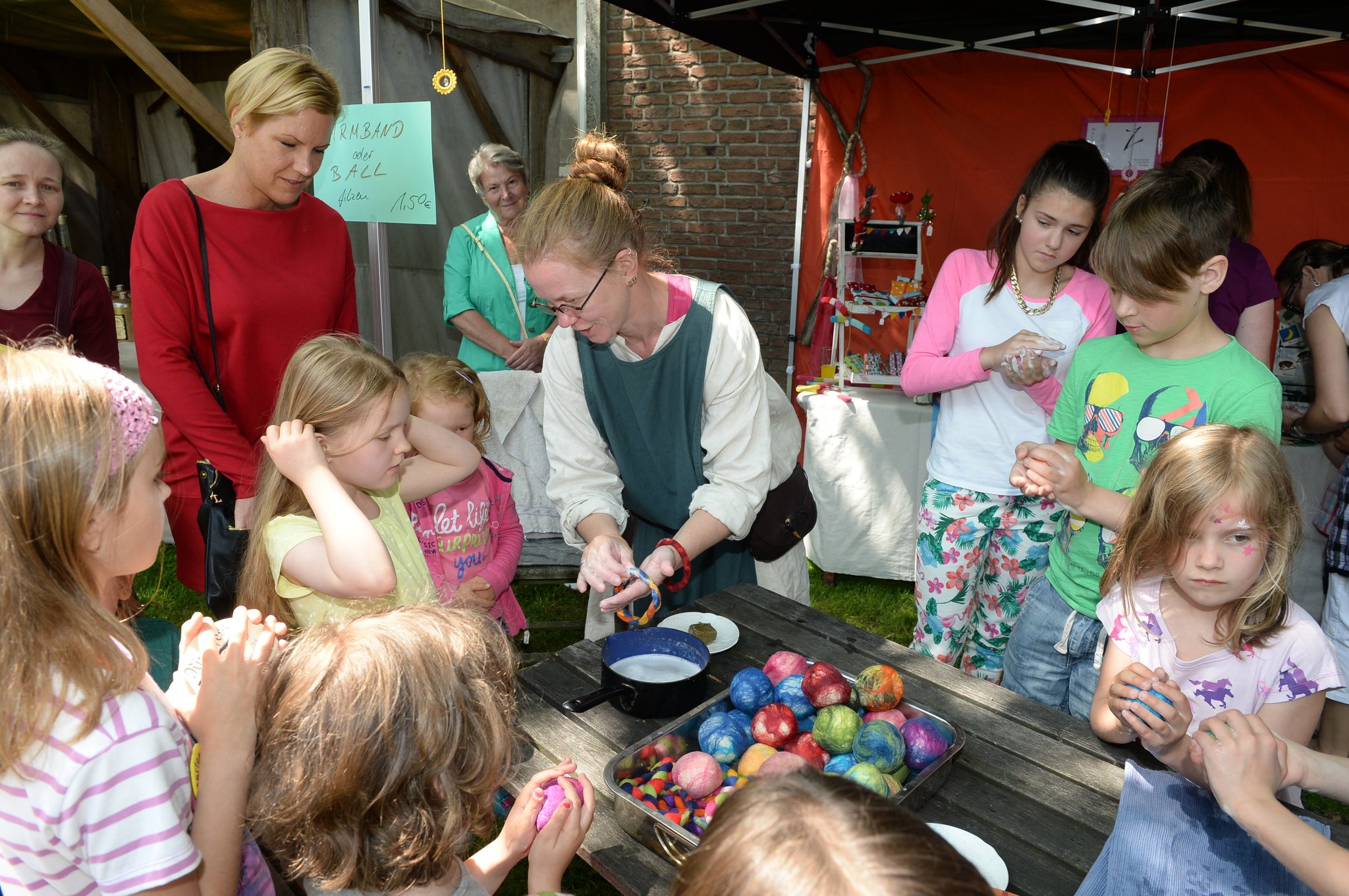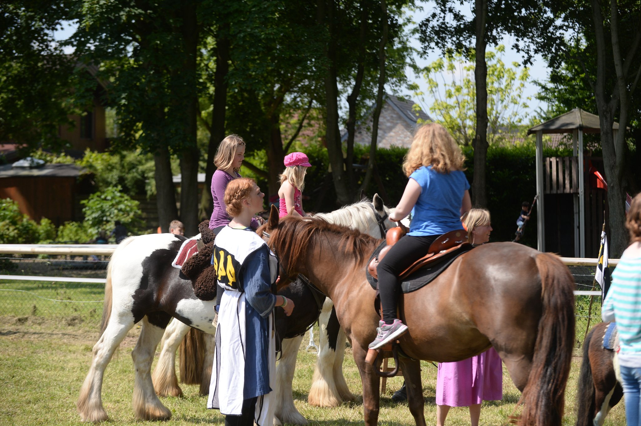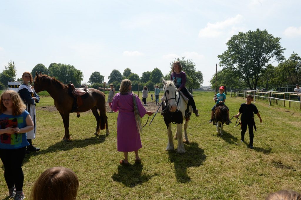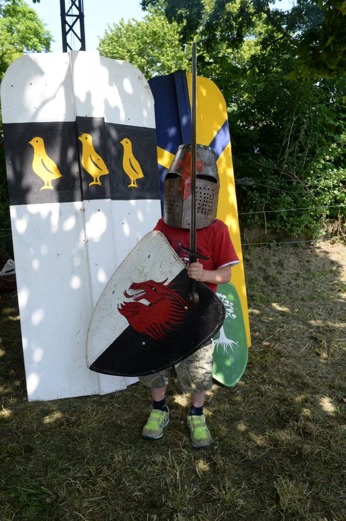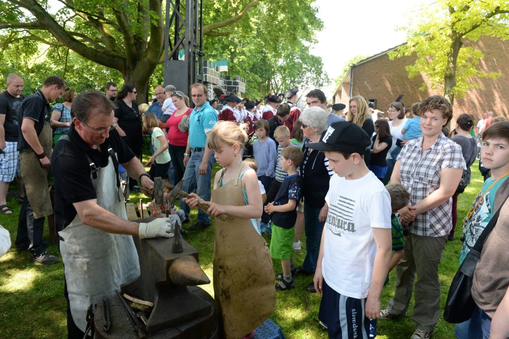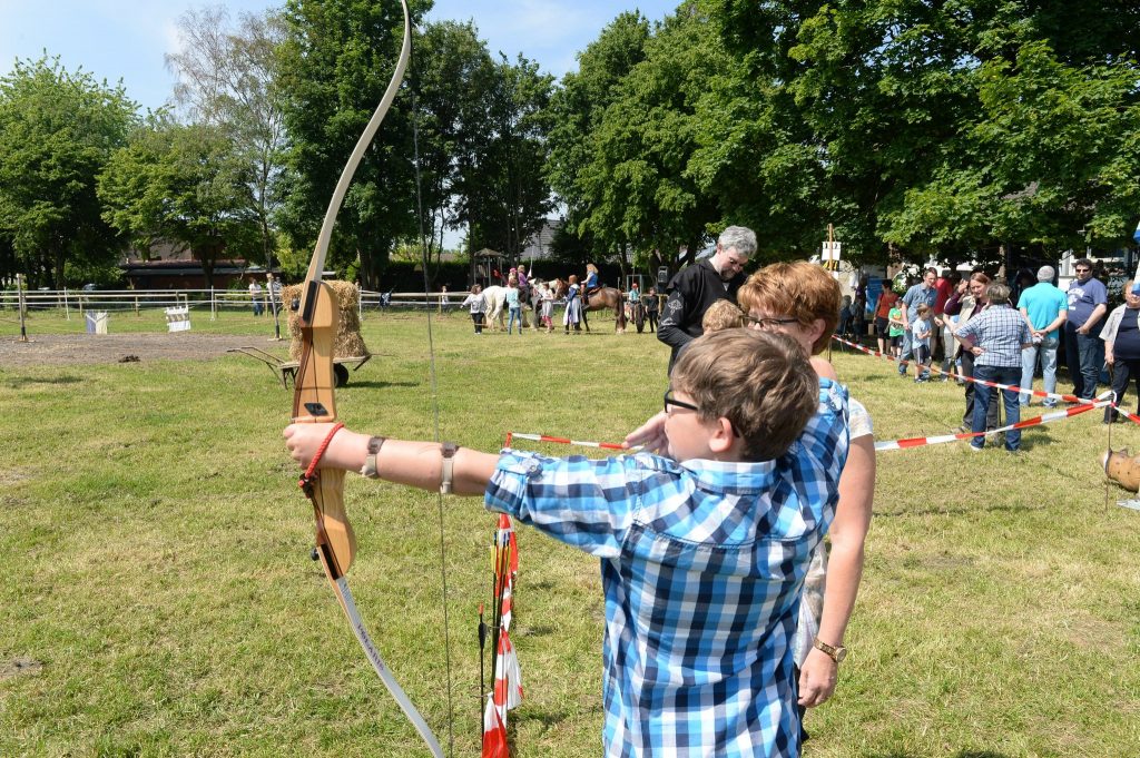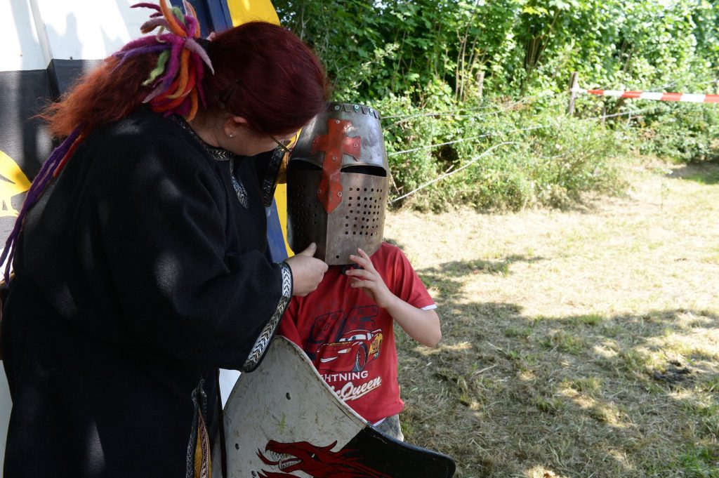 Eine Feldschmiede, die Bogenschützen aus Xanten sowie diverse Angebote für Kinder, vom Erstellen von Schilden mit Wappen, Hufeisen schmieden über Schmuck filzen, Kinderschminken bis hin zur Möglichkeit die Ritterzeit zu Pferd zu erleben, wurde viel Programm geboten.