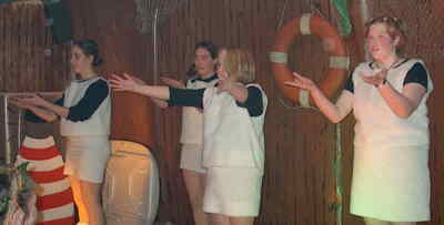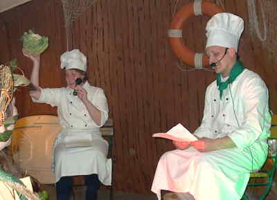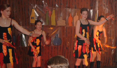 Die Hilfsköche im Gasthaus Maas: Neuling Susanne Esch und der „alte Hase“ Jo Tekath: Sie drückten sich für die heutige Jugend verständlich aus: Rotkäppchen Britta Schulz, Cornelia Croonenbroek, Monika Friese und Susanne Esch (von rechts nach links): Das Ballett der Jugendgruppe mit Maike und Sarah Bodden, Eva Schleß, Petra Slaats