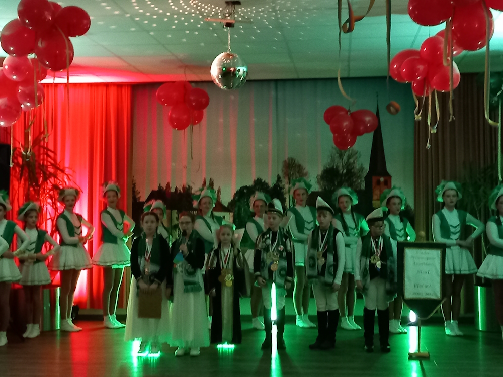 Prächtig war die Stimmung auf der Karnevalsparty im REZ, auf der neben dem Appeldorner Kinderprinzenpaar und Jan und Jan auch die Tanzgarde der KKG aus Kalkar (Foto) mit einem tollen Gardetanz glänzte.