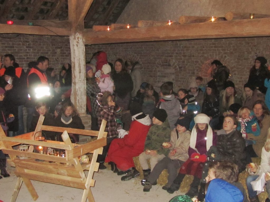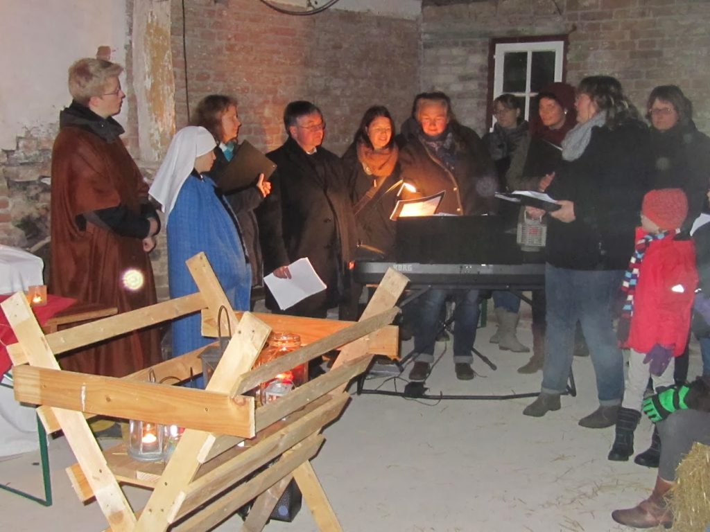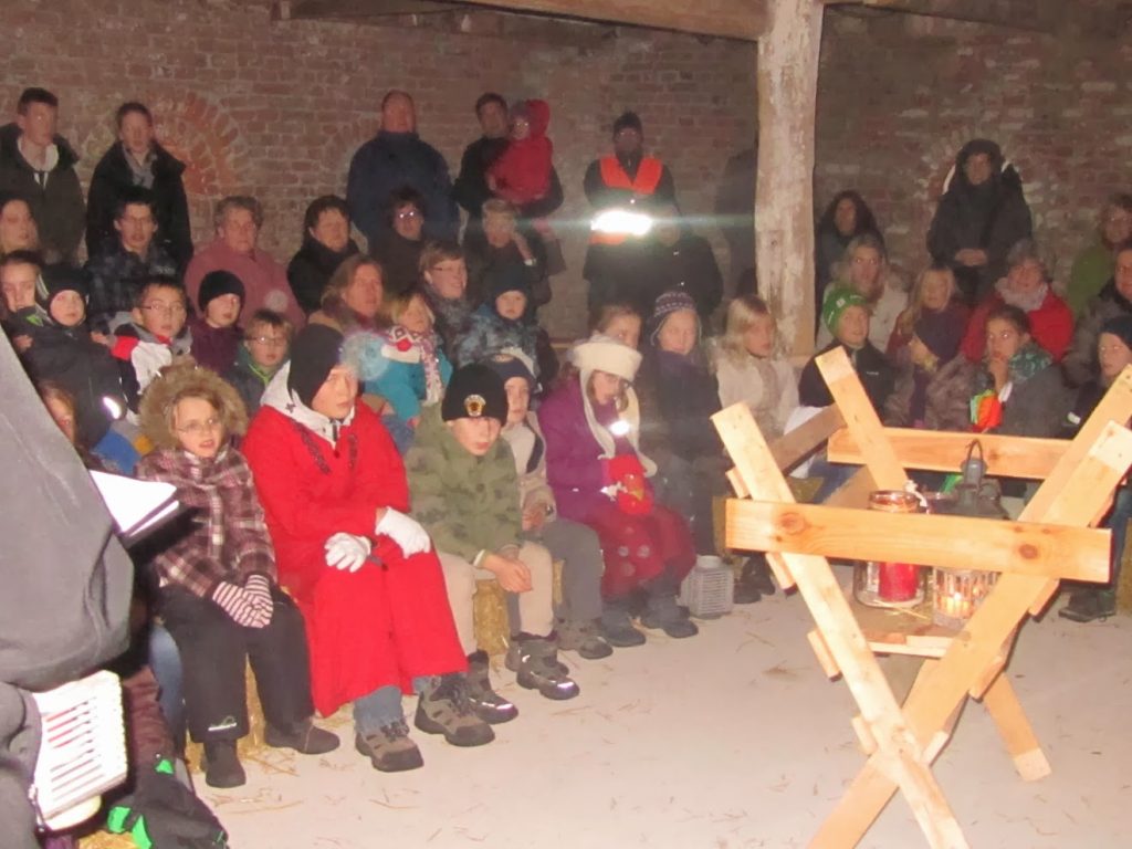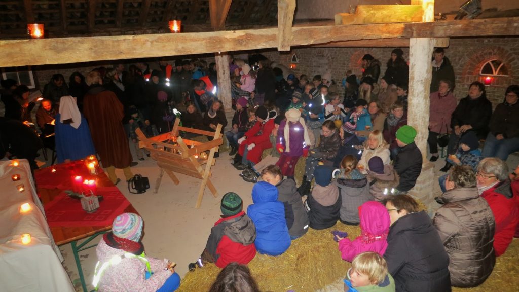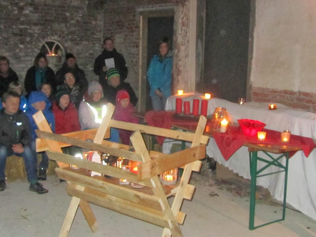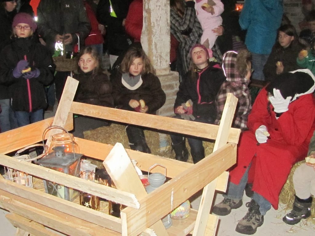 Am Ende fanden Maria und Josef nach vielen Absagen Aufnahme in einem 400 Jahre alten Stall (historisches Backhaus am Friedhof).