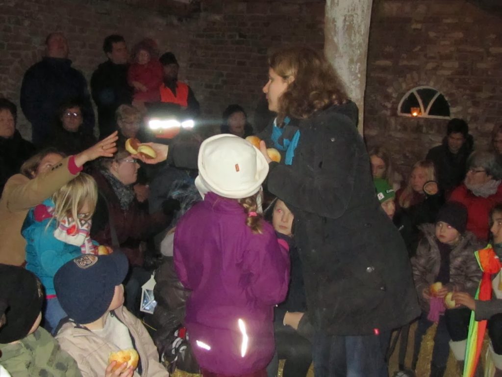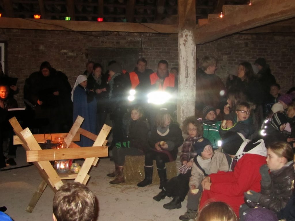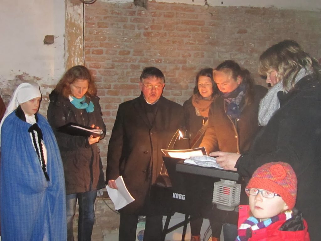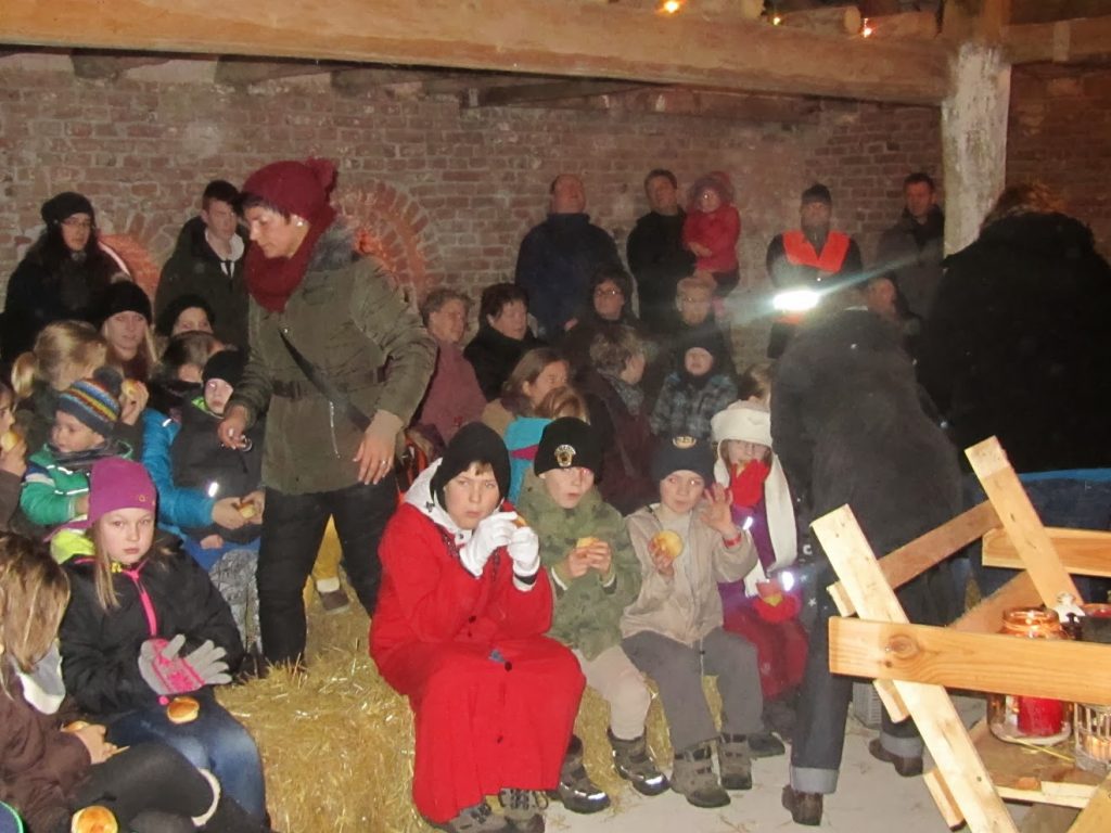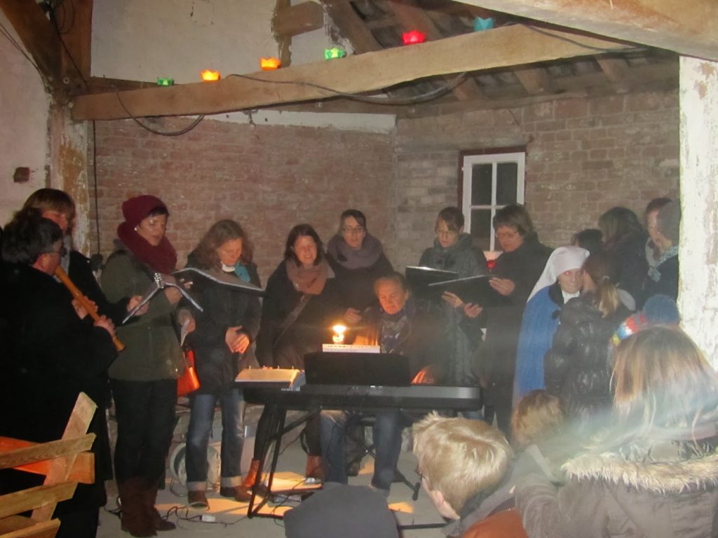 Am Ende fanden Maria und Josef nach vielen Absagen Aufnahme in einem 400 Jahre alten Stall (historisches Backhaus am Friedhof).